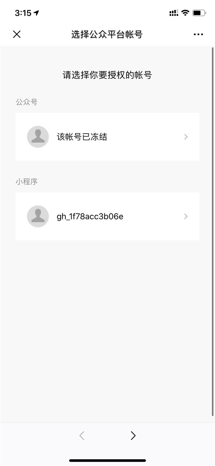 (1)授權時要注意查看授權是否授權錯賬戶了,例如本來授權公眾號,結果授權成小程序。