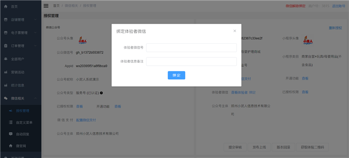 小泥人saas系統功能齊全,能夠滿足不同行業不同商家,我們來分享一下如何授權公眾號或小程序,綁定公眾號或小程序的方法,希望能幫助到大家。