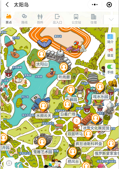 2020年哈爾濱5A景區太陽島電子導覽、語音講解、手繪地圖等智能導覽系統功能上線了!太陽島坐落在黑龍江省哈爾濱市松花江北岸,總面積為88平方公里,其中規劃面積為38平方公里,外圍保護區面積為50平方公里。太陽島是一處由冰雪文化、民俗文化等資源構成的多功能風景區,也是中國國內的沿江生態區。