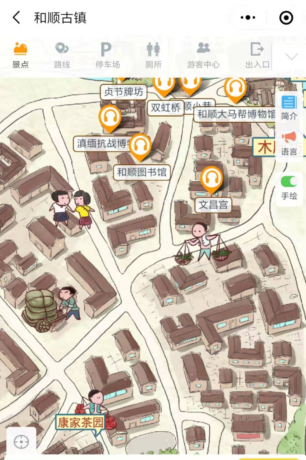 云南騰沖和順古鎮手繪地圖、語音講解、電子導覽等智能導覽系統上線啦,和順古鎮古名"陽溫墩",位于騰沖西南4公里處,由于小河繞村而過,故改名"河順",后取 "士和民順"之意,雅化為今名,全鎮人口6000多,而僑居海外的和順人則達12000多人,是云南著名的僑鄉、國家AAAA級旅游景區。