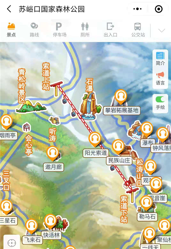 關(guān)于2021年寧夏蘇峪口國(guó)家森林公園4A景區(qū)手繪地圖、語(yǔ)音講解、電子導(dǎo)覽等智能導(dǎo)覽系統(tǒng)就先分享這些啦!關(guān)注小泥人官網(wǎng)http://www.635867.com/了解更多智能導(dǎo)覽功能詳情,合作咨詢(xún):15600265358