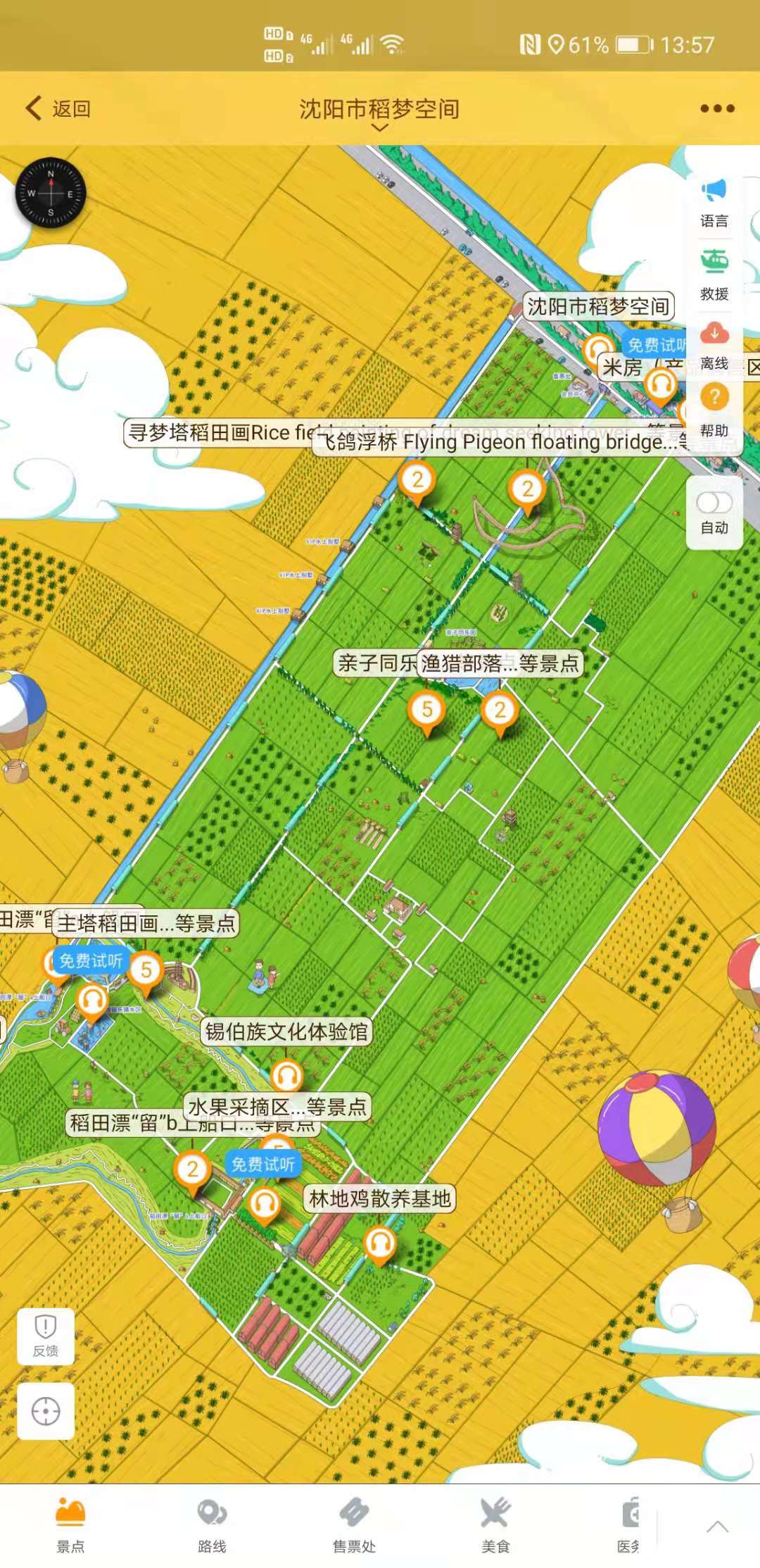 2021年沈陽稻夢空間有什么新的變化嗎?什么時間去是最好玩的呢?沈陽稻夢空間的智慧導覽系統全新更新升級上線了,包括語音講解,手繪地圖,游玩線路等功能,想知道做一套智慧導覽系統多少錢嗎?讓我們先來了解一下沈陽稻夢空間主題公園。沈陽稻夢空間主題公園以稻米文化為、科普農耕文化知識為媒介,是集稻田畫觀光,原始水稻種植,立體養殖,生產加工,休閑體驗,會員加盟,科普教育7位于一體的“生產.生活.生態”稻米主題創意農業產業園。園區以生態環保為理念,打造原始耕種與鴨蟹立體養殖共作的生態稻田;以中華5000年農耕歷史為傳承,展示璀璨悠久的稻米文化;以萬頃稻田為畫布,繪制震撼人心的世界最大稻田畫,讓人們體驗返璞歸真的舒適生活。