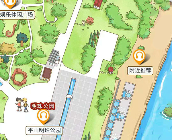 平山明珠公園語音講解包含中英文雙語講解,游客可自由選擇語言,同時采用實時定位講解功能,根據游客GPS定位自動播放景點介紹,價格在10萬。智慧導覽價格除了與語音講解功能有關還與手繪地圖點位數以及景區游玩線路推薦、服務設施查詢等特色功能有關。