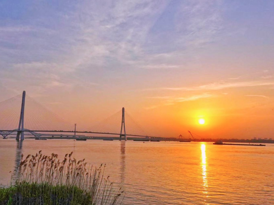南京魚嘴濕地公園位于南京市建鄴區(qū)河西新城濱江風(fēng)光帶最南端,處于長江、夾江和秦淮新河三水交匯處,總面積約64萬平方米。這里有二十多萬平方米是完全原生態(tài)的濕地,有大量濕地樹木。公園里面,濕地棧道、自行車道、綠道、車行道等道路功能各異。沿著蜿蜒曲折的沿江棧道漫步,再炙熱的陽光也被江風(fēng)和樹蔭化解。江風(fēng)拂來,既有潮起潮落的低吟,也有船舶號鳴的渾厚。