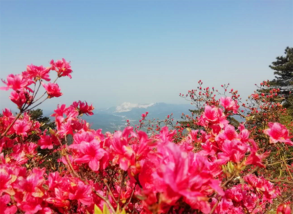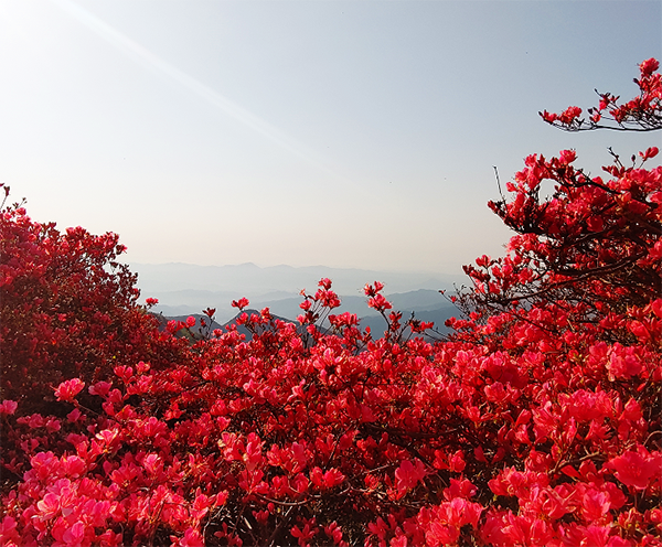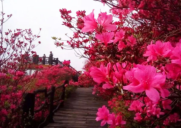 “人間四月天,麻城看杜鵑”的口號深入人心,而龜峰山杜鵑花海更是被譽為“大別山上最美紅飄帶”、“ 世界上最大的古杜鵑群落”、“北緯30度最激蕩人心的紅色花海”。杜鵑花期長達5個月(3—7月),紅、粉、黃、紫、白等花色齊全,花冠碩大,色彩艷麗,千姿百態,五彩繽紛,每到開花季節,無論林間、高山、幽谷,還是草甸、溪畔,漫山遍野都是一望無際杜鵑花海,給森林景觀增添了無限魅力。