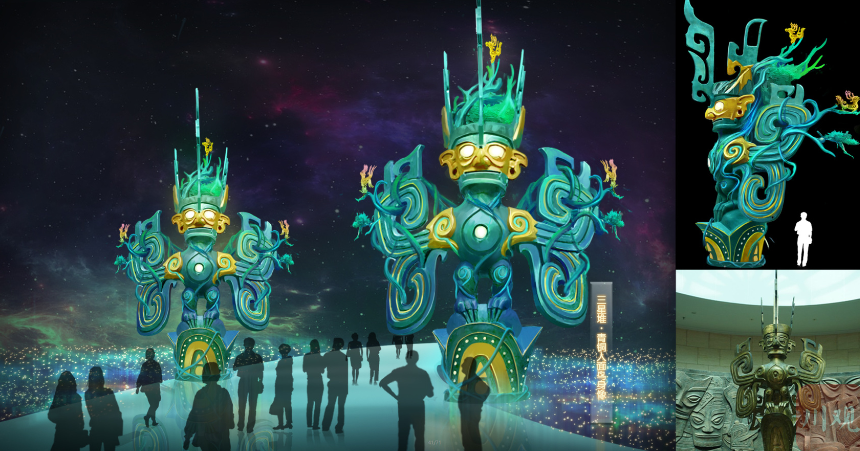 其中,“大過龍年”主題區(qū)與甲辰龍年相呼應(yīng),外觀上運(yùn)用東安閣元素,象征著吉祥如意、繁榮昌盛,打造充滿喜慶和祝福的氛圍感; “古蜀之路”主題區(qū)包含三星遺跡、太陽神鳥、山海異獸等燈組,以三星堆、山海經(jīng)為創(chuàng)作靈感,展示四川古文明的成就與輝煌;“未來世界”主題區(qū)包含未來之門、龍墩墩、蓉寶、星際龍寶、未來之眼等特色燈組,以未來科技為靈感,打造IP主題場(chǎng)景,利用高科技元素呈現(xiàn)未來世界的智慧和創(chuàng)新。