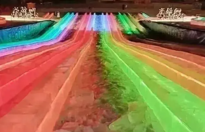 夢幻水晶城堡冰滑梯:這是公園內的一個亮點,高達5米的冰滑梯,共有8條直線滑道和2條S形曲線滑道,夜晚在燈光的照射下更加絢麗。