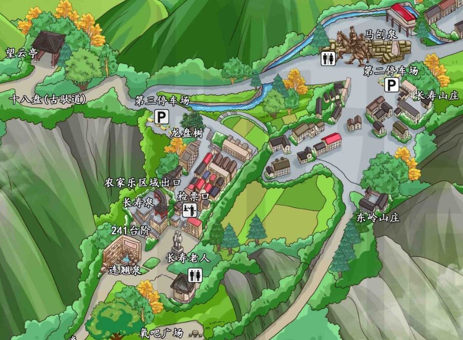 在軟件層面,基于景區(qū) 1:500 高精度測(cè)繪數(shù)據(jù)構(gòu)建 AR 手繪地圖系統(tǒng),將太行山脈的地形特征與古村落建筑風(fēng)格可視化呈現(xiàn),同時(shí)嵌入百歲老人傳說、養(yǎng)生秘方等文化內(nèi)容。游客通過微信小程序即可訪問,支持離線下載功能以適應(yīng)山區(qū)網(wǎng)絡(luò)信號(hào)不穩(wěn)定的環(huán)境。