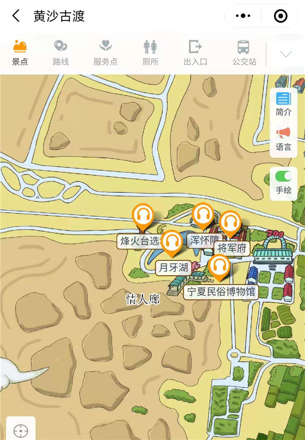 關于2021年寧夏黃沙古渡4A景區手繪地圖、語音講解、電子導覽等智能導覽系統就先分享這些啦!關注小泥人官網http://www.635867.com/了解更多智能導覽功能詳情,合作咨詢:15600265358