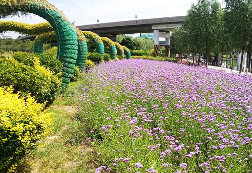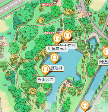 秀水公園以江南園林為主,突出展示江南水景,包括人工瀑布、水源地湖、卵石湖岸。園內(nèi)植物超過百種,綠化面積達90%,三季有花、四季有景的園林景觀,深受當?shù)赜慰拖矏邸P闼珗@為提高大家的游玩體驗,2021年上線了智慧導覽系統(tǒng)。