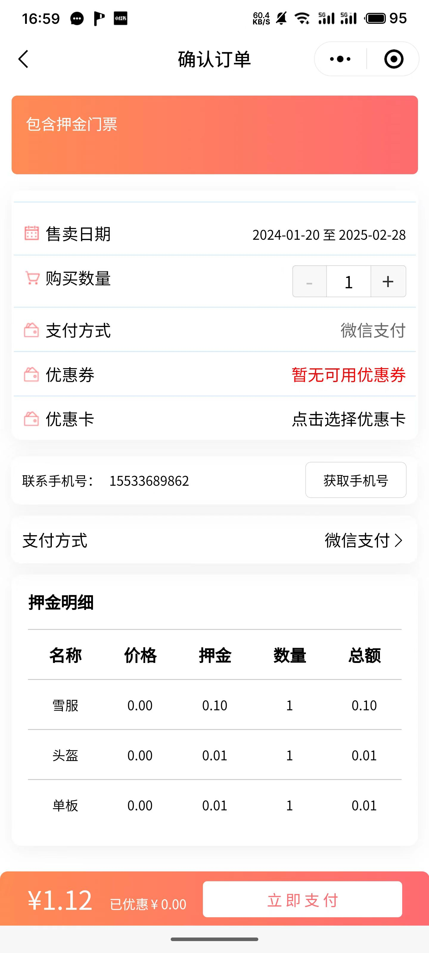 北京漁陽國際滑雪場綜合票務管理系統、票關聯押金功能上線上線了!